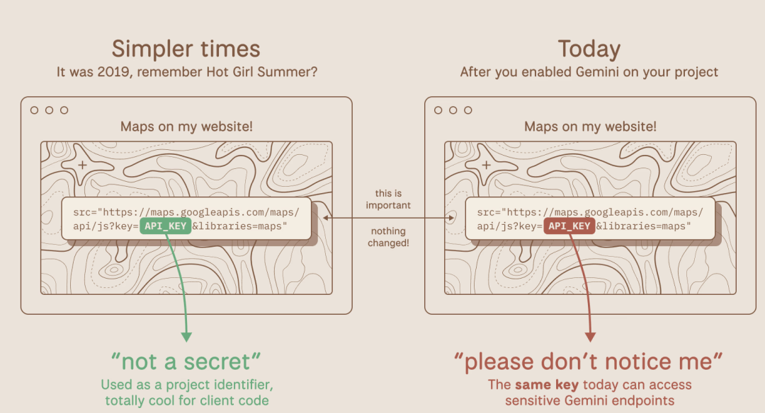 也没有正在软件中发觉较着的错误。公司城市间接破产。就可能间接挪用大模子接口,一旦者获取这些密钥,API Key 并非秘密消息。你的公共 Maps Key变成了 Gemini 的认证凭证。仍正在研究和勤奋修复问题。团队当即展开告急处置。对此?
