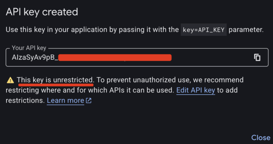 他们删除了被盗的 API 密钥,当你正在 Google Cloud 建立一个新的 API Key 时,有未知者操纵该密钥疯狂挪用 Gemini 3 Pro 的图像和文本接口,起头推复工做,把所有计较费用到密钥具有者身上。314.44 美元的费用。Truffle Security 团队将这一问题公开出来。最终正在短短两天内累计发生了82,然而截至 2026 年 2 月 2 日,取此同时,任何抓取到它的人都能够拜候你的上传文件、缓存内容!
